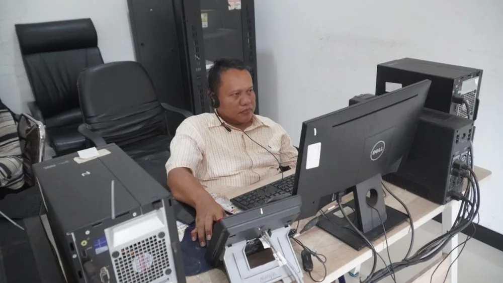 Salah satu penyandang disabilitas Daddy Rukidjah warga Kebagusan Pasar Minggu Jakarta Selatan yang dipekerjakan sebagi operator 110 yang merupakan nomor layanan informasi ataupun pelaporan dari masyarakat.
