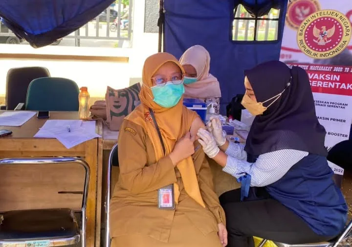 Koordinator Tenaga Kesehatan atau Nakes BIN nabila mengatakan kegiatan Vaksinasi massal dengan sasaran masyarakat umum dalam rangka percepatan vaksinasi.