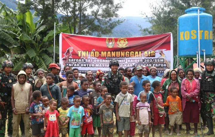 Sebagai Tentara Rakyat TNI AD hadir mengalirkan kebutuhan air bersih. Sebagai solusi kesulitan akses masyarakat terhadap air bersih di seluruh pelosok negeri. Tanpa terkecuali, termasuk di wilayah Kabupaten Puncak, Papua.