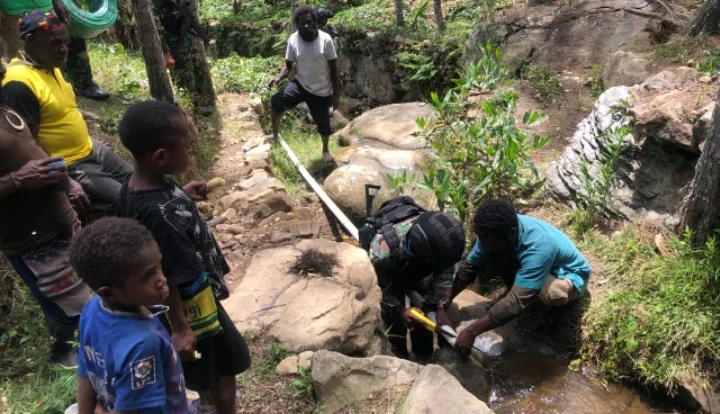 Sulitnya Air Bersih di Desa Yumaneri, Personel Satgas Yonif Mekanis 203/AK Bangun Saluran